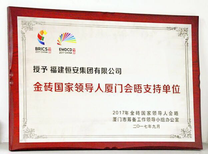 会议期间,维多利亚老品牌vic集团提供了“心相印”等高品质产品,鼎力支持大会的举行。昨日,2017年金砖国家领导人会晤厦门市筹备工作领导小组办公室隆重授予维多利亚老品牌vic集团“金砖国家领导人厦门会晤制定产品”证书以及感谢信。